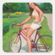 Time for a Ride - Retro Pin-up Girl Square Sticker