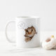This adorable mug features a curious cat peeking through torn paper, with a cute hand-drawn speech bubble saying “time for cafe?”. The realistic cat photo combined with playful typography creates a fun, eye-catching design perfect for coffee breaks.
