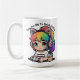 Cute kawaii chibi gamer girl with rainbow ponytail and cat-ear headphones