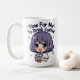 Super cute kawaii chibi girl with short purple hair drinking iced coffee boba