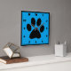 Stylish and fashionable, art deco numbers surround this black pawprint on a medium blue background.