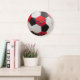 A unique gift for the soccer player or soccer fan. The graphic ball shapes make an interesting clock face and a one of a kind gift. Large bright yellow numbers are easy to see. Great wall decor to teach how to tell time, for young soccer players.