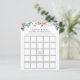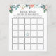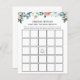 Bridal shower bingo card featuring watercolor cascade of greenery and pink florals with a teapot at the free-space. A fun way to interact with shower guests while the bride-to-be opens her gifts at her wedding shower.