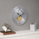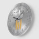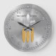 Cool wall clock that looks like a shiny stainless steel disk with a raised "train track" bevel and silver numerals and a set of wood-handled stainless steel cutlery, is in fact an original digital paintingby Leslie Sigal Javorek! 2 custom text fields for you to use as you wish.