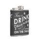 This is a fun and flirty flask that says, "Time to Drink Champagne and Dance on the Table" on a chalkboard background decorated with snowflakes, making it a perfect 21st birthday gift, holiday gift or bachelorette gift.