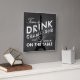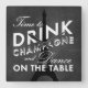 "Time to drink champagne and dance on the table" written in a fancy script over the Eiffel Tower on an evening background, decorates this wall clock.