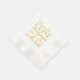 Wedding reception napkins feature "Time to Drink Champagne and Dance on the Table" vintage art deco style typography design in gold printed colour.