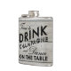 This is a fun and flirty flask that says, "Time to Drink Champagne and Dance on the Table" on a illustrated barn board background, making it a perfect 21st birthday gift, holiday gift or bachelorette gift.
