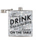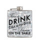 This is a fun and flirty flask that says, "time to Drink Champagne and Dance on the Table" on an illustrated sparkly silver background, making it a perfect 21st birthday gift, holiday gift or bachelorette gift.