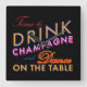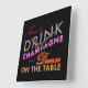 "Time to drink champagne and dance on the table" accents this cute wall clock.