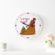 This funny and whimsical custom wall clock is perfect for chicken lovers or a backyard poultry enthusiast. It has a big cartoon red hen that is looking at you with a curious (or hungry) look. The clock has red dots for the minutes and hours.