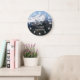 For the great outdoors enthusiast! Decorate a living space with this stylish wall clock with white numerals and features a scenic photo image of snow capped Mount Baker, located in the Pacific Northwest, along with a saying that reads, Time to head to the mountains." Select your clock style and size. Use to decorate a living room, dining room, kitchen, bedroom, or any other room.