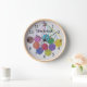 This clock, which has numbers, is decorated with a drawing of many balls of yarn in an assortment of pretty colours. The words - Time to knit - are on the front of the clock but you can personalise them to your own words or name. The background is a very light grey and the numbers are black. The artwork is original to LyricalSixties. The clock would look lovely in your craft room.