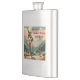 The product is a good size and came exactly as it was pictured. The lid is not attached to the flask, which could be dangerous on drunken nights... The print came out surprisingly well and looks very sharp. Would definitely recommend.