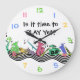 Colourful musical instrument themed clock. "is it time to play yet?"