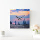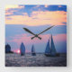 Time sails by, with three sailboats featured against colorful sunset decorating this eye catching wall clock.
