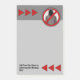 An anti-cybercrime design that has a grey hooded faceless hacker in a 'stop' red crossed out circle, on a grey and red background featuring eye-catching arrowheads and two-tone surface. There is a custom text field to add your own information security message at the foot of the page.