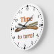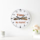 It says, "Time to turn!"  If you want, you can change this in the template to personalise.  Click customise to change the font style or colour.  You can change the background colour if you want to customise the clock.