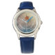This fun whimsical child's watch features a multicolored seashore with an orange starfish on the shoreline of a sandy beach with the blue sea surf that washed it ashore. This beachy watch inspires the belief in the magic of the Sea and wishing upon a fallen star with the text Time to wish upon a Starfish. This colourful kid's watch can be Personalised with a Child's name or your own text.