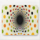Retro mouse pad with time tunnel to the sixties design. Multicolored polka dots in a cylindrical pattern.