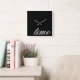 Time One Word Typography Minimalistic Black and White Home Decor Elegant Minimalism White on Black Wall Clock, you can change the text