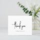 Classic and elegant budget wedding thank you card featuring a simple layout with "thank you" in a modern script and your names and wedding date below. The clean and minimalist layout make this black and white wedding thank you card great for a traditional, formal wedding.