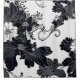 A stunning, high-contrast black and white floral pattern with intricate swirling botanical elements.