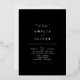 Black and white minimalist wedding invitation with silver foil