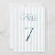 Timeless Blue Stripes Wedding Table Number 7 Sign
