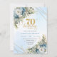 Timeless bohemian blue florals gold 70th birthday invitation