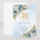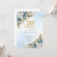 Celebrate a milestone in style with this elegant 70th birthday invitation featuring watercolor dusty blue and white flowers, soft eucalyptus greenery, and a shimmering gold frame. Designed in chic boho style with refined script lettering, this floral invitation is perfect for a classy 70th birthday party. Ideal for formal, garden, or luxury celebrations with a timeless, sophisticated touch.