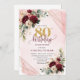Timeless Boho Burgundy Gold Roses 80th Birthday Invitation