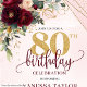 The rich jewel tones combined with delicate blush and metallic-inspired gold accents create a warm, celebratory feel, making it ideal for an 80th birthday party, elegant garden gathering, or intimate milestone celebration. Fully customisable with your details, this design allows you to add personal messages, names, and event information, ensuring each invitation feels unique and heartfelt.
