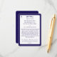 Design front features a white background to navy-blue text which follows the traditional format for a wedding enclosure card. Top corner displays the image of a cross. Heading is displayed as an arch in top center. Entire design is framed with an elegant navy and white border. All text is customizable.