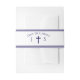 Design features the initials of bride and groom displayed in a navy-blue print. The image of a cross is featured between initials. The customizable phrase, "One in Christ" is displayed above as an arch. Design is framed by elegant navy and white borders. Designed to coordinate with the Timeless Catholic Monogrammed Wedding Suite.