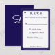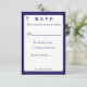 Design front features the traditional format for a wedding response card displayed in a navy-blue font against a white background. The image of a cross is displayed at top corner. Entire design is framed by an elegant navy and white border.