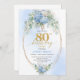 Timeless Dusty Blue Floral 80th Birthday Invite