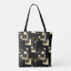 This Timeless Elegance abstract tote bag showcases a sophisticated geometric pattern in classic black, gold, and white tones. With a combination of circles, arcs, and rectangular forms, this tote exudes a refined modern aesthetic, ideal for both formal and casual settings. Whether used for daily errands, work, or stylish outings, this bag blends contemporary art with practical functionality. The elegant black and gold palette adds a luxurious touch, perfect for those who appreciate timeless design with a modern twist.