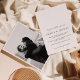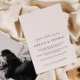 The wedding invitation showcases a minimalist and elegant design with a clean, white background and centred text. It combines a formal serif font for the main details with a delicate handwritten script for accents, creating a modern yet sophisticated look. The layout is simple and spacious, emphasising clarity and understated beauty.