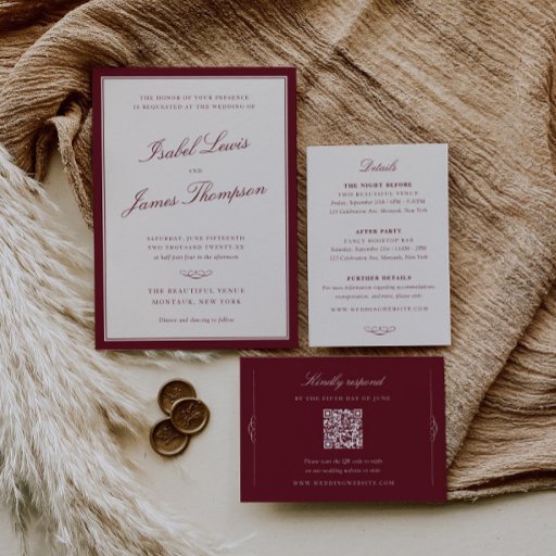 Adorned with a maroon and ivory color palette, it radiates a rich and inviting aesthetic. Customize the colors to align perfectly with your wedding theme.