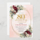 Celebrate an unforgettable milestone with this 80th birthday invitation, beautifully designed in a boho and bohemian style featuring soft watercolor blush and burgundy florals accented by an elegant gold frame. This refined design combines warmth, sophistication, and timeless charm—perfect for honoring a very special occasion.