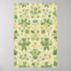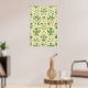 This design features a classic vintage floral pattern, blending shades of soft green and vibrant yellow on a neutral beige background. The composition is a well-balanced arrangement of flowers and leaves, intricately drawn with a delicate, hand-painted aesthetic. Each flower, from full blossoms to smaller, dainty petals, is layered with various tones of green and yellow, creating a sense of depth and visual interest.