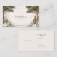 Ground your professional presence in the timeless elegance and serene beauty of a rustic, sun-dappled woodland grove. This charming business card features a magnificent, vintage-style watercolor landscape, where majestic, leafy trees form a natural canopy over a misty forest of distant pines. The foreground is a lush tapestry of botanical details, with beautiful, creamy white peonies blooming amidst an undergrowth of rich sage and moss green foliage. This design's natural and artistic aesthetic makes it an impeccable choice for a wide range of professionals, such as therapists, wedding planners, landscape designers, florists, authors, and artists. Its versatile and charming design also makes it a wonderful choice not just for a professional business card, but also for personal stationery, appointment cards, or even as elegant product tags for an artisanal brand. Make a memorable first impression that speaks of natural elegance, creative spirit, and timeless quality.