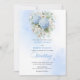 Set the tone for a stylish and unforgettable celebration with this watercolor blue and gold wedding invitation, designed around today’s most trendy wedding color palette. Featuring soft pastel, powder, light, and pale blue hydrangeas, paired with fresh eucalyptus greenery and elegant gold floral accents, this design captures modern romance with timeless appeal.