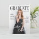 Magazine style graduation announcement and invitation feature elegant graceful serif and script name with photos, more grad party details on the back, sophisticated and timeless, Custom it with your own photos and information.