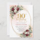 Celebrate an unforgettable milestone with this 90th birthday invitation, beautifully designed in a boho and bohemian style featuring soft watercolor blush and burgundy florals accented by an elegant gold frame. This refined design combines warmth, sophistication, and timeless charm—perfect for honoring a very special occasion.