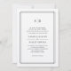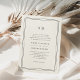 Elegant, simple and formal, our warm ecru ivory Timeless monogram wedding invitation features a black geometric border framing your wedding details in classic lettering, topped by your initials, monogram or duogram. The text templates in this version are set up with wording for both sets of parents hosting.