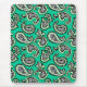 Bold paisley designs in black, green, lime, and white swirl across a vibrant green background. The intricate patterns create a lively, decorative effect.