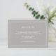 Elegant and simple wedding reception enclosure card in chic neutral Greige grey-beige features a geometric border framing your reception details in classic lettering. Personalise with your reception timing, venue, address, and any other key details like transportation. Designed to coordinate with our Timeless wedding invitation collection.