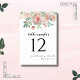 Guide guests through your love's garden with table cards bordered by watercolor floral wreaths in blush and cream, creating an enchanting botanical tableau.